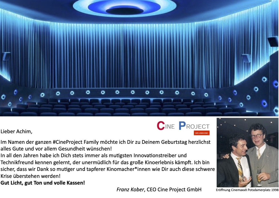 From the headquarters in Landshut, CINE PROJECT has developed over 25 years of company history into a global cinema integrator that repeatedly draws attention to itself with innovative concepts and innovations. Klaus Jaschke, member of the management board of the IHK Niederbayern, recently awarded the company for this entrepreneurial development work, in which international success is combined with a sense of home and down-to-earthness. He presented a certificate of honor from the Chamber of Industry and Commerce to the founder and managing director Franz Kober on the occasion of the 25th anniversary.